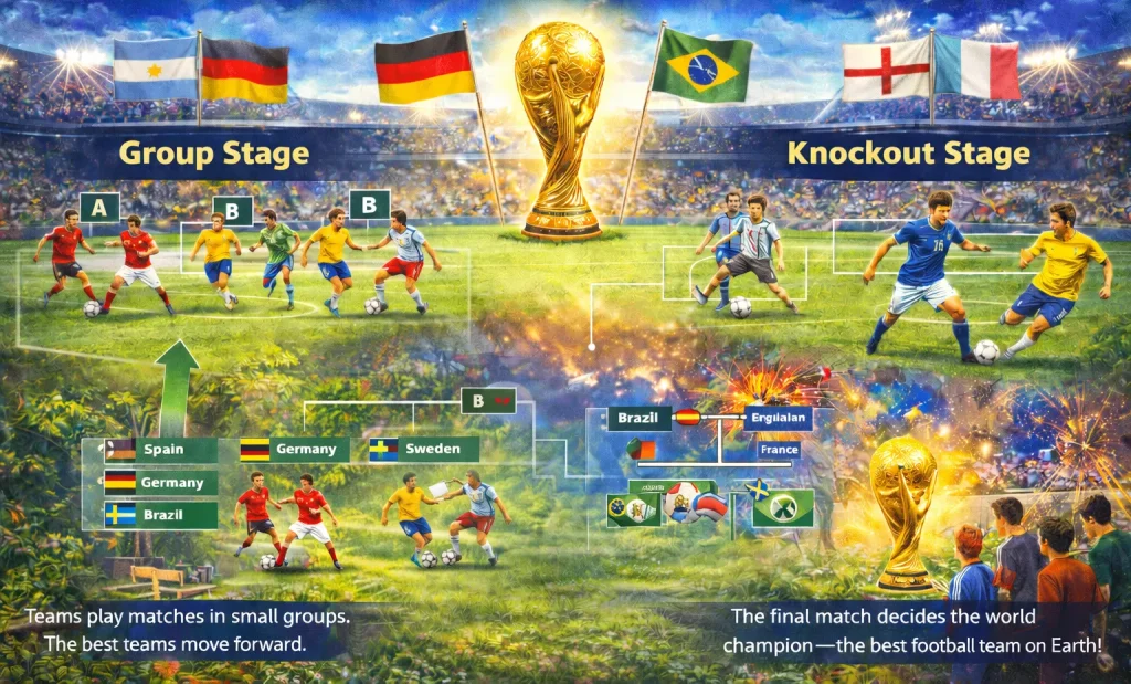 Millions of fans watch the matches, cheer for their favourite teams, and celebrate the excitement of football. It is like a giant festival of sport!
