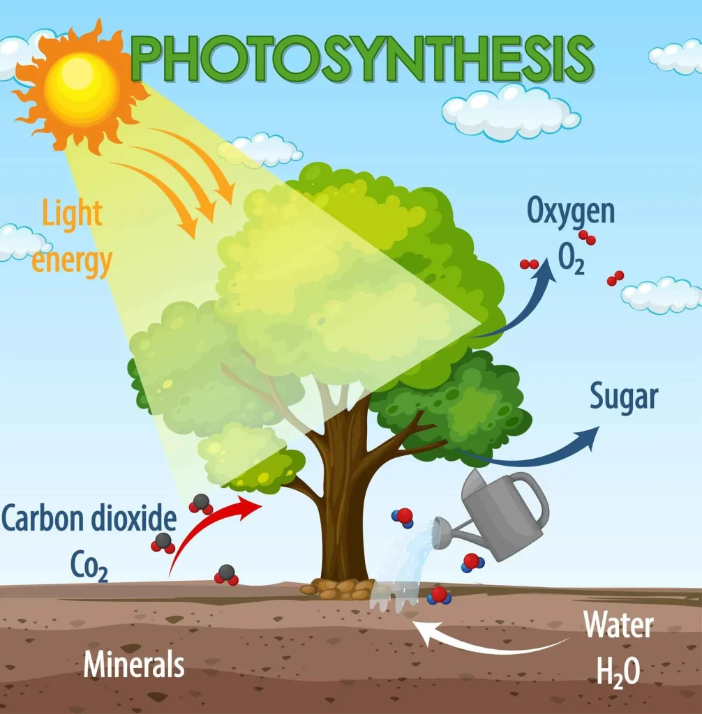 Trees breathe too! Through a process called photosynthesis, trees take in carbon dioxide (CO₂) — a gas we humans produce — and release oxygen, which helps us breathe better. They also capture dust and pollutants from the air.