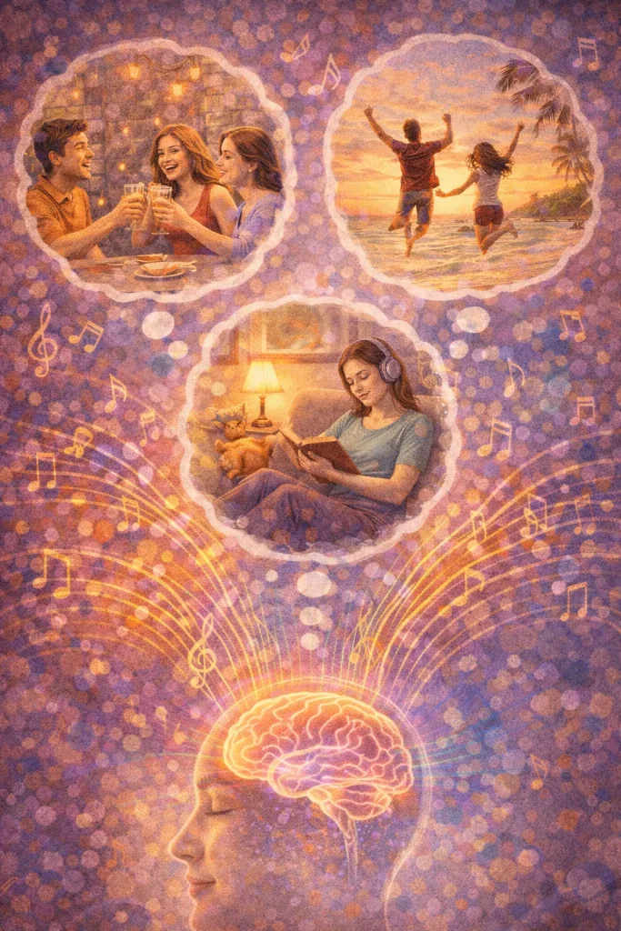 Dopamine is released when we enjoy something — like eating chocolate or getting a compliment — and music can trigger that same pleasure reward system. That’s why your favourite song can make you smile or even dance.