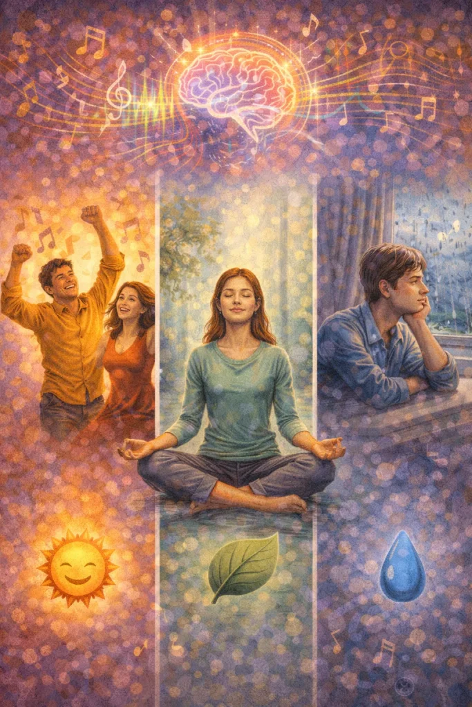 Sometimes music doesn’t just match our mood — it helps us express emotions we can’t easily put into words. That’s why people might listen to sad music when they feel sad, or happy songs when they want to celebrate. Music gives feelings a voice.