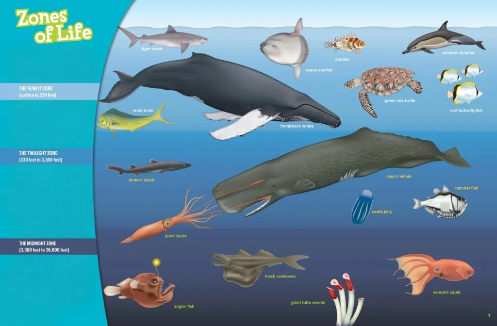 • Midnight zone and deep zones: Very dark and extreme, with strange creatures adapted to live there